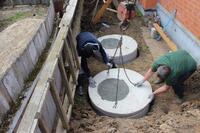 Монтаж железобетонных колец начинается с подготовки котлована, где создается ровное основание. Затем с помощью крана кольца поочередно опускаются в подготовленное место и устанавливаются одно на другое. Важно обеспечить точное выравнивание колец и герметизацию стыков для предотвращения проникновения воды. После установки колец проводится бетонирование швов для их надежного закрепления. Завершающим этапом является засыпка и уплотнение пространства вокруг колец, что обеспечивает стабильность и долговечность конструкции.